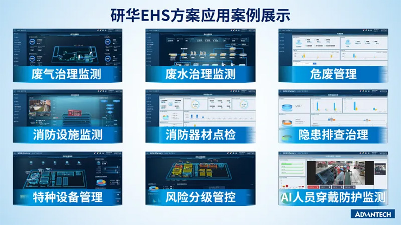 研華EHS廠務環安衛管理解決方案基于 ISO14001和45001規范,充分融合了人工智能、大數據、云計算、數字孿生和物聯網等技術,幫助企業順利應對環境、健康和安全管理方面的各種挑戰,助力企業實現系統化、精細化、數字化、智能化和可追溯管理,推動企業向數智化管理和可持續發展邁進。
