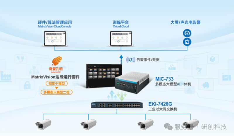 這是一款基于研華高性能邊緣計(jì)算平臺(tái)MIC-733,深度集成創(chuàng)新奇智視覺小模型與多模態(tài)大模型的邊緣智能終端,通過創(chuàng)新的“視覺識(shí)別 + 深度語義理解”融合分析路徑,具備強(qiáng)大的本地視頻智能分析及大模型深度研判能力。
