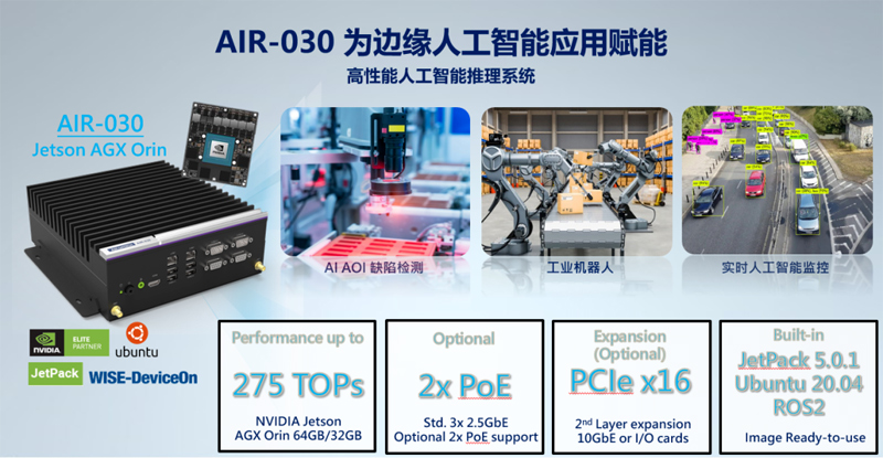 研華最新發(fā)布基于NVIDIA? Jetson Orin™ 平臺的邊緣AI推理系統(tǒng)與開發(fā)套件,外形小巧,性能更大,功耗更低,非常適合各類應用邊緣端的小型低功耗智能機器人部署。