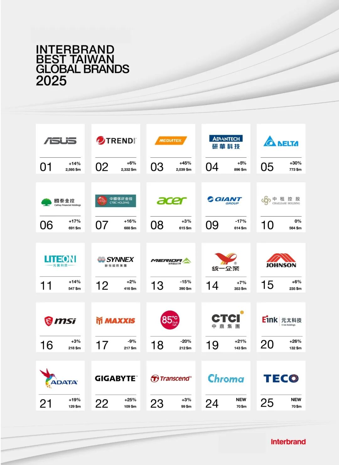 該評選由研究機構推動,并委由國際權威品牌顧問公司Interbrand進行鑒價。評估過程采用符合ISO 10668國際標準的品牌價值評估方法,綜合企業(yè)財務表現(xiàn)、品牌在決策中的角色,以及品牌長期經營強度等多項指標,從國際視角衡量企業(yè)的整體品牌價值與發(fā)展?jié)摿Α?/p>