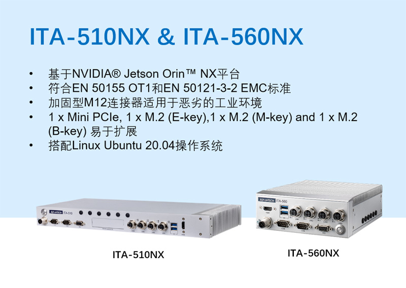 該系列產品具有豐富的I/O接口,可支持5G、WiFi等多種擴展,并且寬溫寬壓設計,產品符合EN 50155認證和EN 50121-3-2 EMC標準,配備的加固型連接器適用于惡劣環境使用。除了?NVIDIA?AGX Xavier與?Orin NX?產品,研華持續投入研發,后續即將上市基于Orin Nano?與AGX Orin平臺的更高算力的產品,豐富AI服務器家族,提供給客戶可靠、多樣的產品選擇。