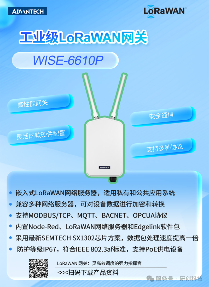 ? WISE-4610P:LoRaWAN I/O 模塊,采集溫度、流量及報警狀態等模擬量與數字量信號