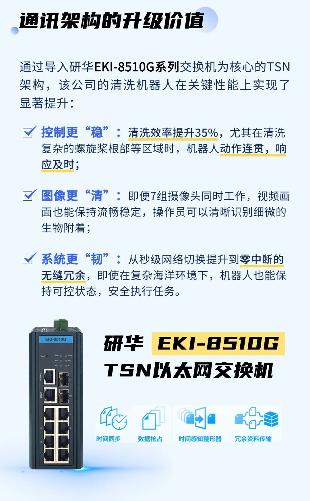 告別水下延遲!研華TSN交換機為清洗機器人重塑“神經網絡”